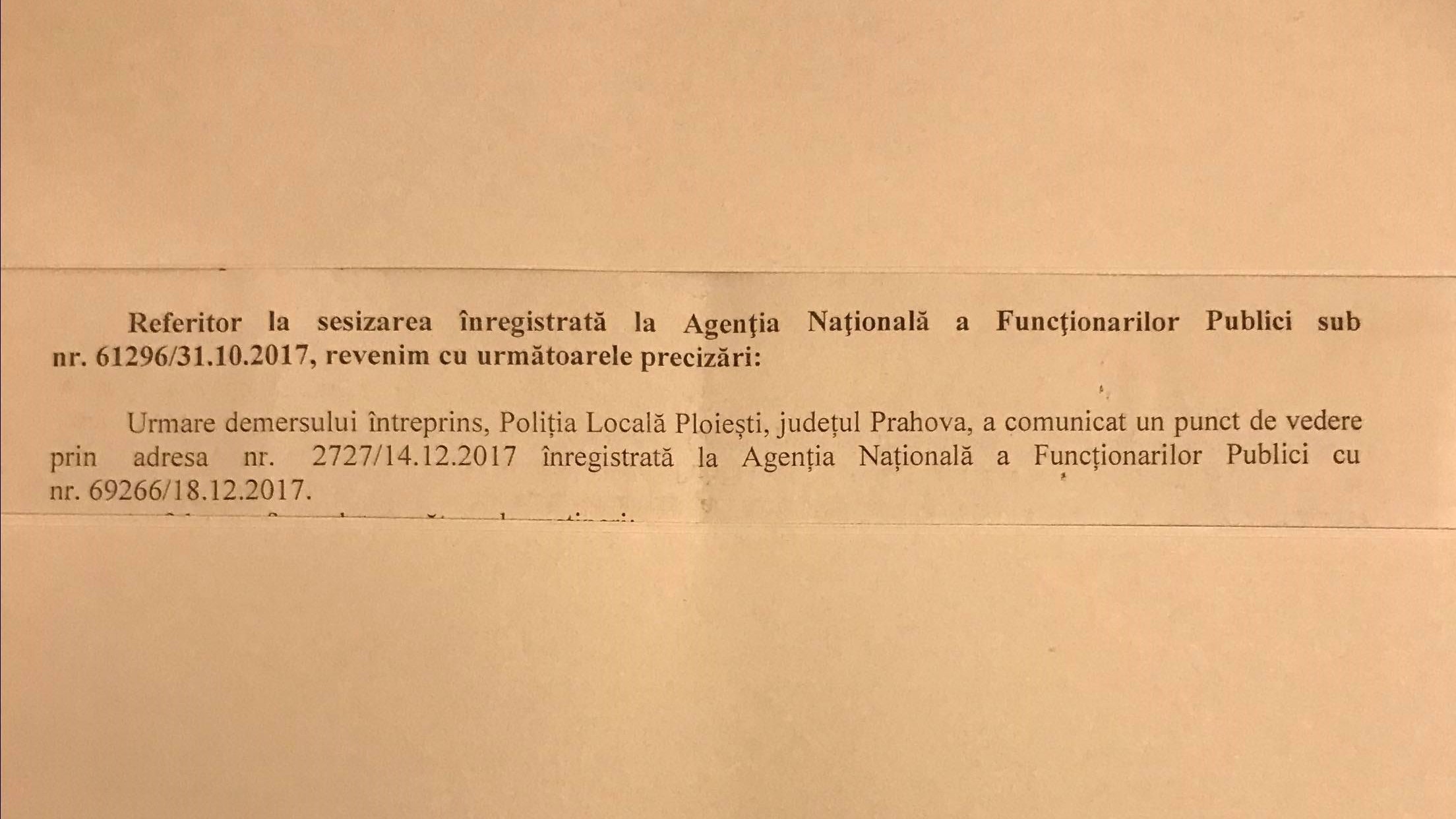 In cele doua plangeri penale depuse recent la nivelul Parchetului General se face referire despre adrese catre A.N.F.P intocmite de conducerea Politiei Locale Ploiesti, in fals si/sau cu un continut fals pentru a se putea da o forma de legalitate (prin raspunsurile primite de la A.N.F.P) mentinerii ilegale ale unor functionari publici (politisti locali) care nu indeplineau criteriile legale minime de numire in functie si/sau care nu au urmat, in termen de un an prevazut de lege, un program de formare initiala ce are ca efect eliberarea imediata si imperativa din functia publica, aspect care nu s-a realizat.