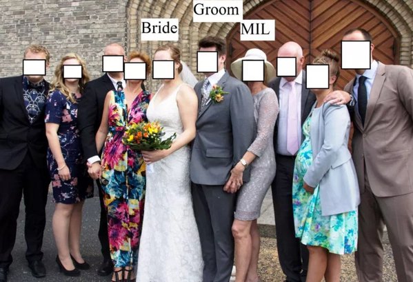 Invitaţii la nuntă, şocaţi de modul în care soacra mare îşi atinge fiul în poza de grup