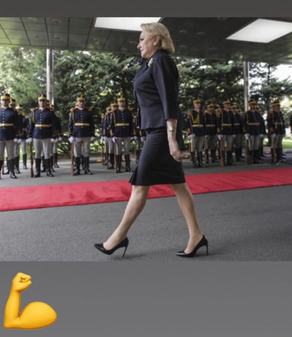 Victor Dăncilă a postat recent pe Facebook o fotografie în care se află mama lui, Viorica Dăncilă, purtând o ţinută office în apropierea unui covor roşu.