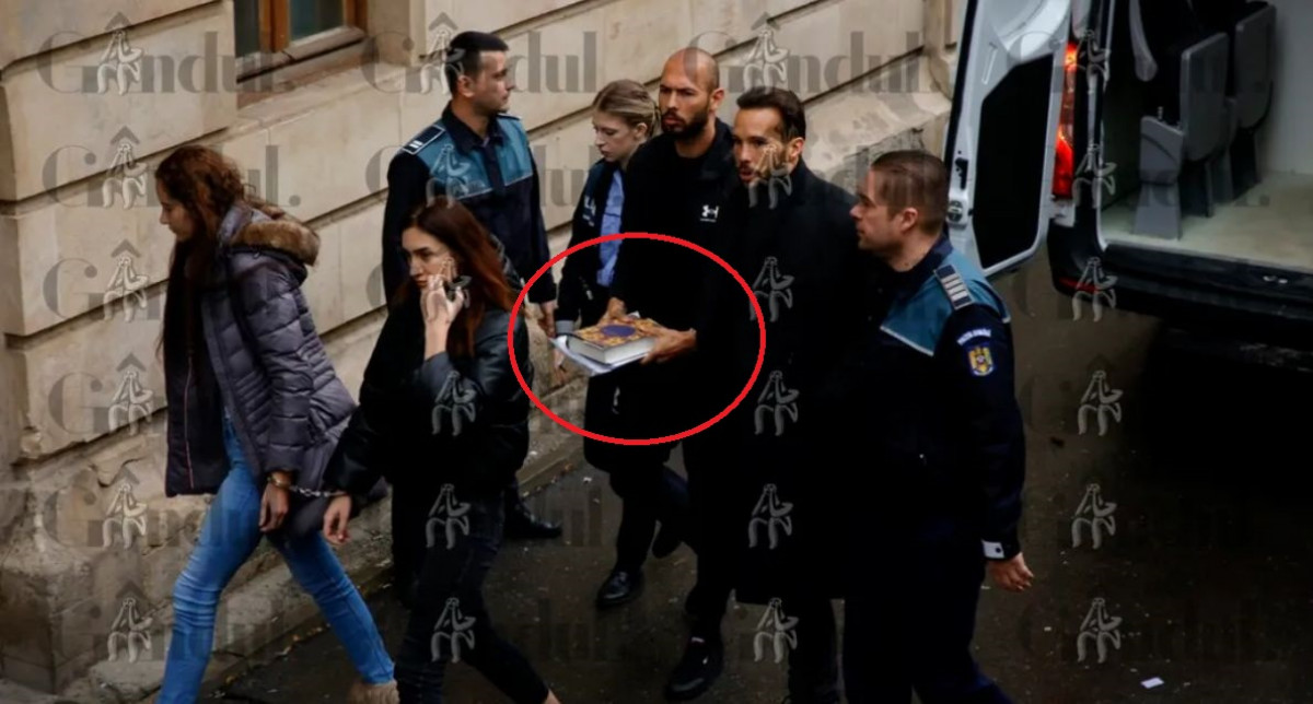Fabulos ce avea Andrew Tate în mână când a coborât din duba poliției