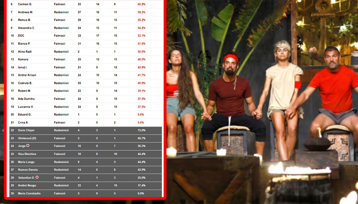 Clasament în timp real SURVIVOR 14.02.2023. De necrezut care Faimos e pe primul loc!